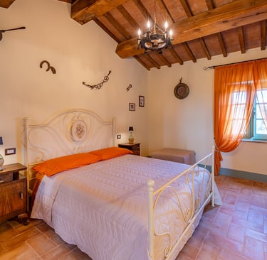 Quattro unità abitative nel cuore della Toscana. Travi originali del Seicento, cotto artigianale, dettagli pensati con cura. Ogni camera racconta una storia di questo luogo.