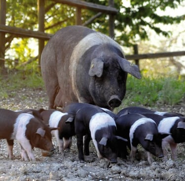 La Cinta Senese è uno dei simboli più autentici della Toscana rurale: un maiale rustico, elegante nei suoi colori, e straordinario nei sapori che regala.
