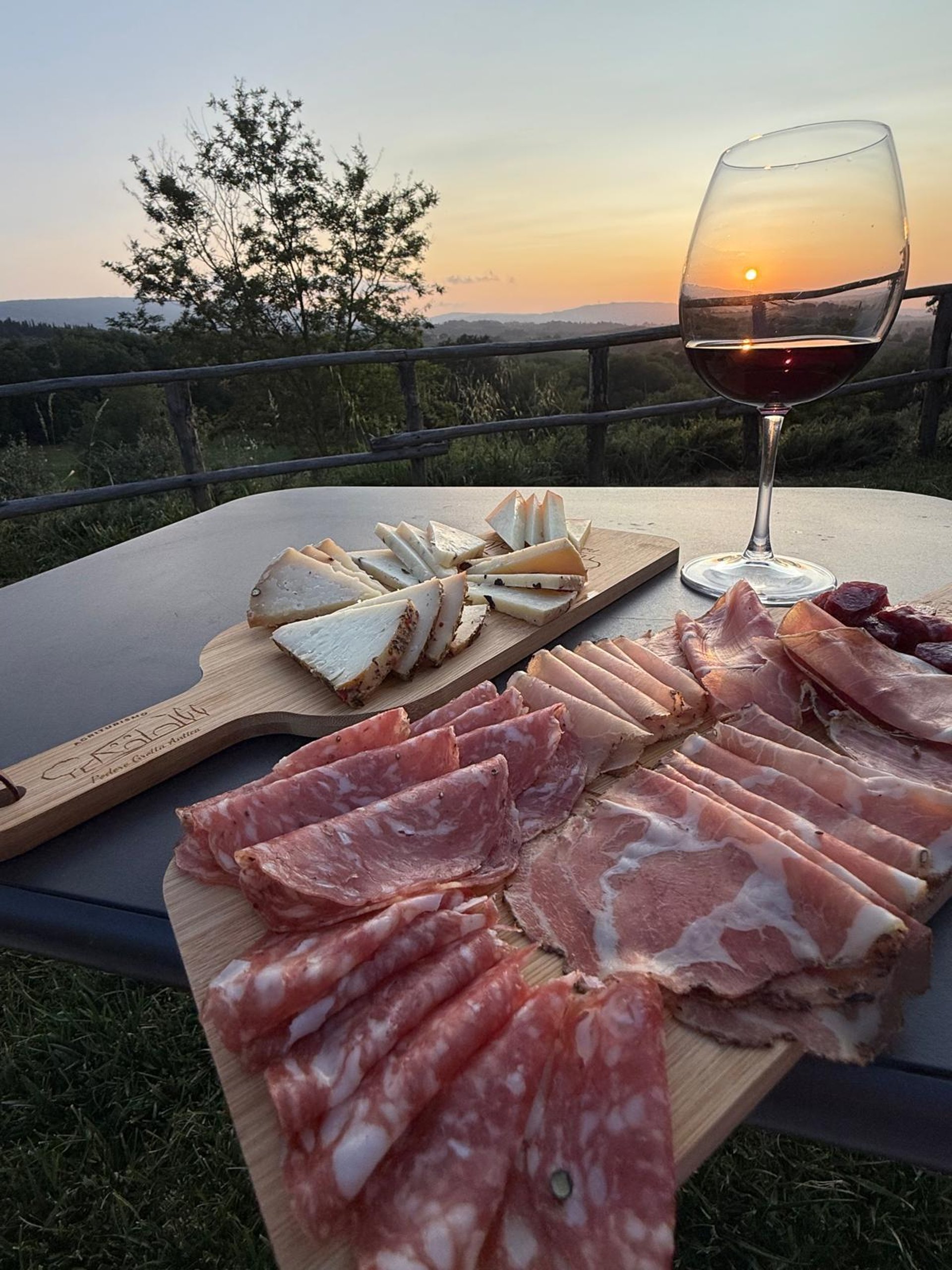Su richiesta serviamo i nostri taglieri di salumi e formaggi locali, accompagnati da pane caldo e un filo d’olio extravergine d’oliva del Podere.