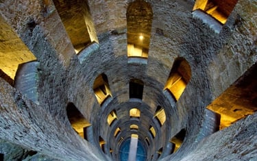 A few steps from the center, the Pozzo di San Patrizio spirals deep into the earth.