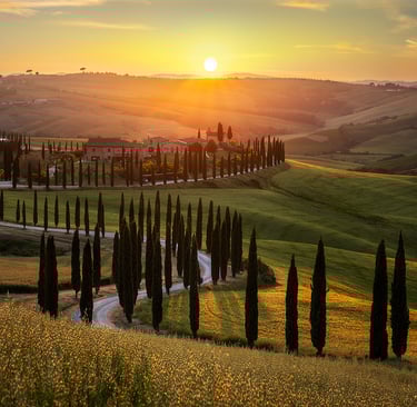 From the lunar biancane of Chiusure to Site Transitoire—Tuscany's "Stonehenge" where the sun sets perfectly framed by a stone window—from the ancient walls of Monte Oliveto Maggiore Abbey to the cypress-lined avenues drawing the horizon, this is the authentic heart of the Crete Senesi. An itinerary for those seeking contemplative Tuscany, the one that has inspired artists and photographers for centuries.