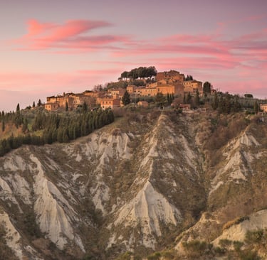 There's a corner of Tuscany where the earth becomes sculpture. Where hills shed their green dress to reveal their clay soul, shaped by wind and water into forms that seem to belong to another planet. The Crete Senesi aren't just a landscape: they're an emotion, a silence that fills you, a beauty that takes your breath away.