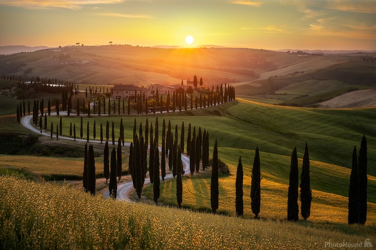 A magical place not to miss is the Podere Baccoleno cypress avenue (visible from SP60): a winding "S"-shaped path flanked by centuries-old cypresses. It's one of Tuscany's most iconic images. The avenue is private but photographs beautifully from the public hillside along the road.