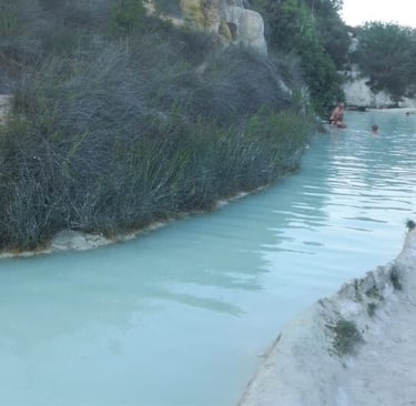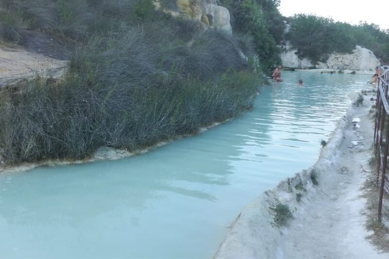Arrive early morning or toward sunset. In summer Bagni San Filippo can be very crowded, especially on weekends. At dawn or sunset you'll find fewer people and an even more magical atmosphere. Bring swimsuit, towel, drinking water, and comfortable shoes — the path can be muddy, especially after rain. And remember: here the water is really warm even in mid-winter, so this experience is perfect in any season. Don't forget your camera: the White Whale under the right light is one of Tuscany's most photogenic places.