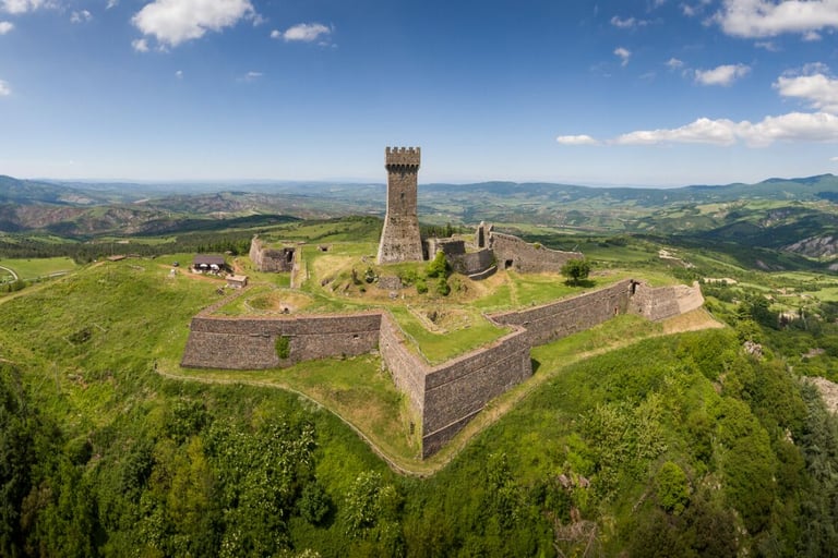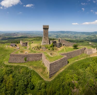 You see it from afar, the Fortress of Radicofani. It's impossible not to notice: a powerful tower standing at 896 meters, the highest point in the entire Val d'Orcia. When you arrive, you understand why for centuries it was contested between the papacy, Siena, and Florence — from up here you control everything.