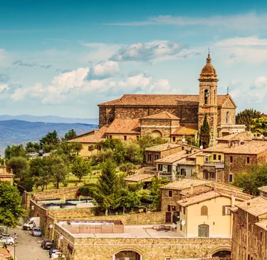 Montepulciano is one of Tuscany's most spectacular villages: its streets climb spirally toward Piazza Grande, passing among Renaissance palaces, artisan shops, historic wine shops, and underground cellars carved into tufa.