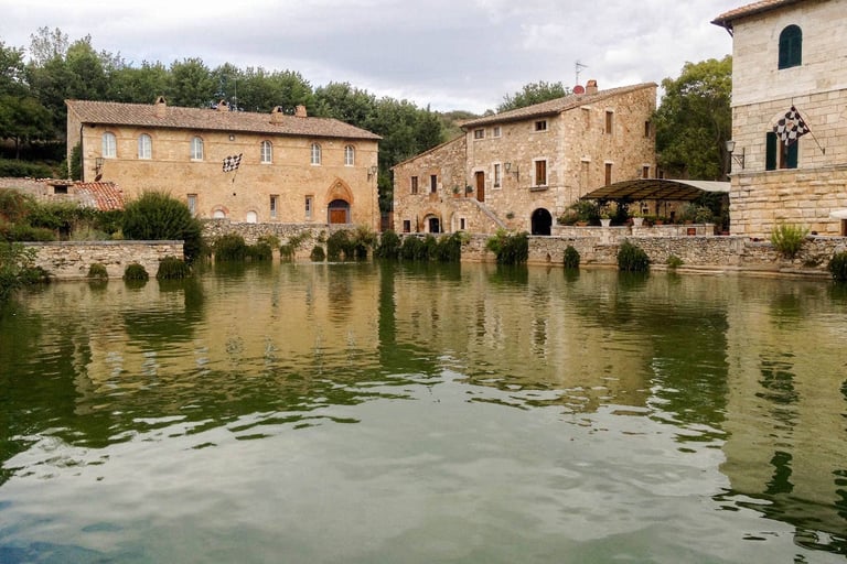 Go down to Parco dei Mulini (5-minute walk from village). The stone pools where thermal water flows are accessible and free. You can take off your shoes and soak your feet in warm water while the sun sets.