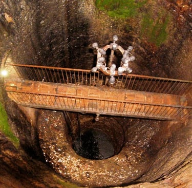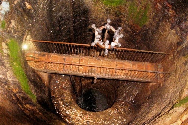Puoi scendere fino in fondo con una scala e un ponte che attraversa la cavità. L'atmosfera è da film: acqua che scorre, pareti umide, eco. È suggestivo.