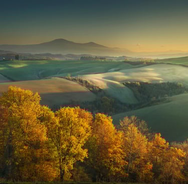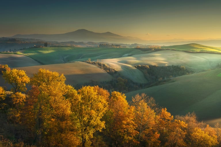 Quando la Val d'Orcia si arrampica verso il cielo e i colori caldi delle colline lasciano spazio al verde profondo dei boschi, sei arrivato nel regno del Monte Amiata. L'antico vulcano spento che da 1738 metri domina la Toscana meridionale non è solo una montagna: è un mondo di borghi medievali arroccati su rocce di trachite, faggete centenarie dove il silenzio ha il suono del vento tra le foglie, sorgenti d'acqua purissima che dissetano intere città. Qui l'aria profuma di castagni e funghi, le abbazie millenarie custodiscono storie di re longobardi, e in ogni borgo si respira l'orgoglio di chi ha saputo vivere della montagna senza mai piegarla.