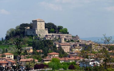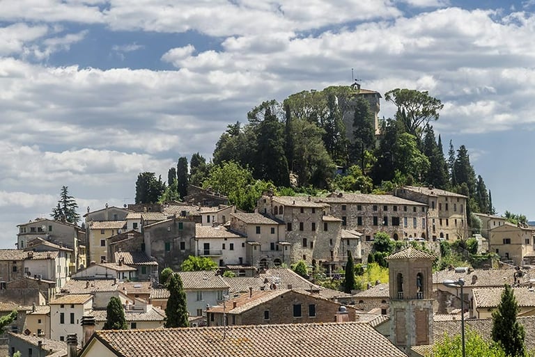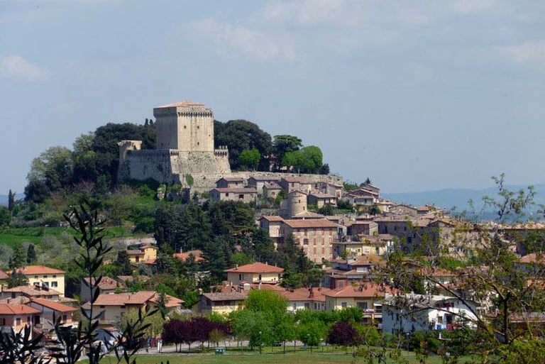 Il suo castello domina la valle come un guardiano silenzioso, e nei vicoli si respirano secoli di vita toscana.